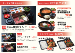 焼肉真焔 二つ折りランチメニュー