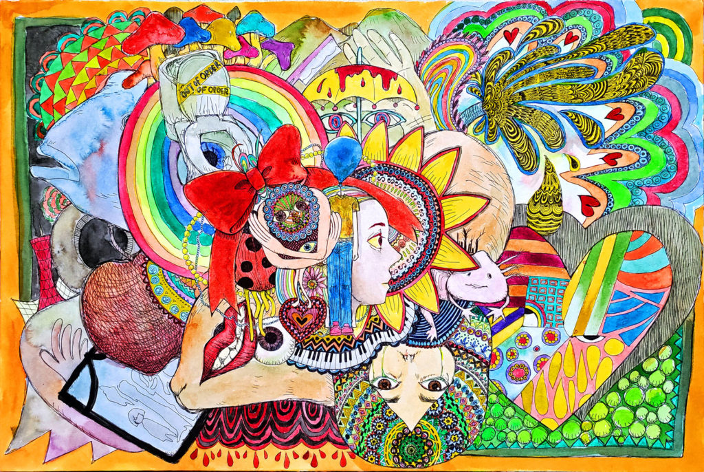 水彩紙、透明水彩、ペン